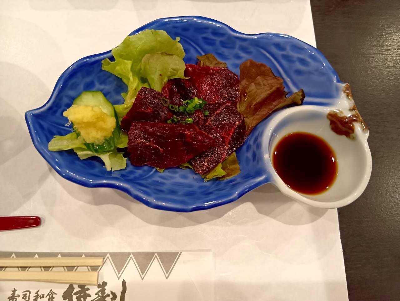 クジラのお刺身。お酒をいただくメンバー達もお酒が進んだようです。